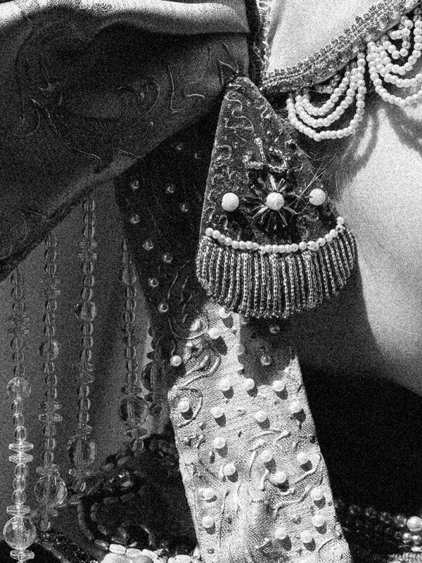 Деталь женской одежды — вошва, использован образ сокола, терзающего лебедушку- образы из русского фольклора, 17 век, Государственный Исторический музей