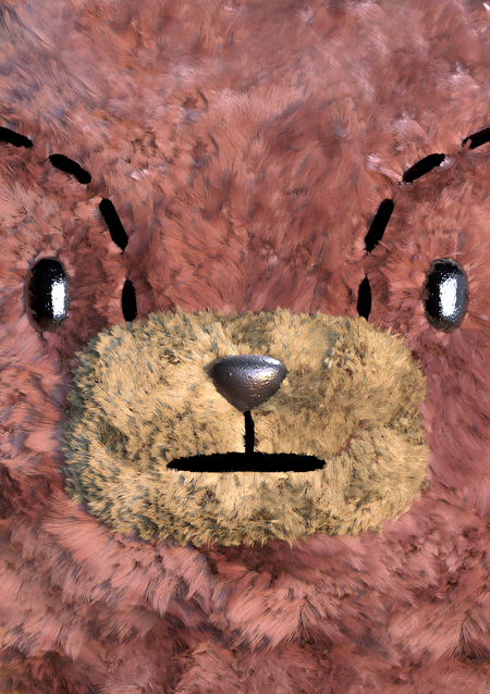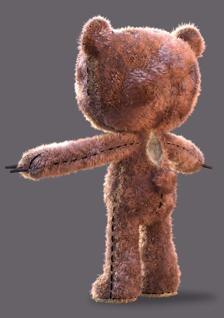 Важно отметить: 1 / Реалистичность шерсти и шейдеров 2 / Толщину волосинок, которая часто встречается у плюшевых игрушек на полках магазинов. 3 / Проработку шерсти на мордочке, на которой заметно разделение на швы рта, при том что сами швы не видны. 4 / Ткань, просвечивающую на животе. Такое решение может разнообразить грум или скрывать неравномерное распределение волос.