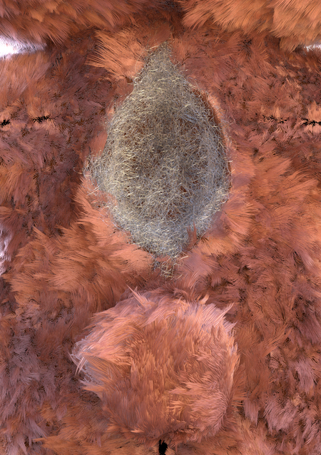 По своей сути пух — большое количество нитей, спутанных друг с другом, поэтому его можно сымитировать, создав грум по маске дыры.
