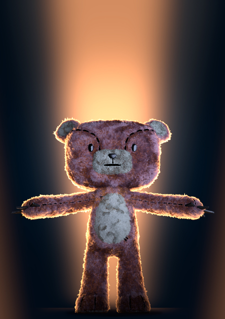 В плюшевого мишку засунули петарду, теперь у него на спине — дыра, из которой просачивается пух. Ниже представлен небольшой бонусный рассказ о том, как воссоздать материал-наполнитель для плюшевых игрушек с помощью груминга.