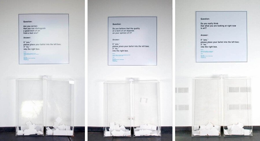 Ханс Хааке «Опрос в Музее современного искусства» («MOMMA poll»), 1970 // Юрий Альберт «Московский опрос» («Moscow poll»), 2009