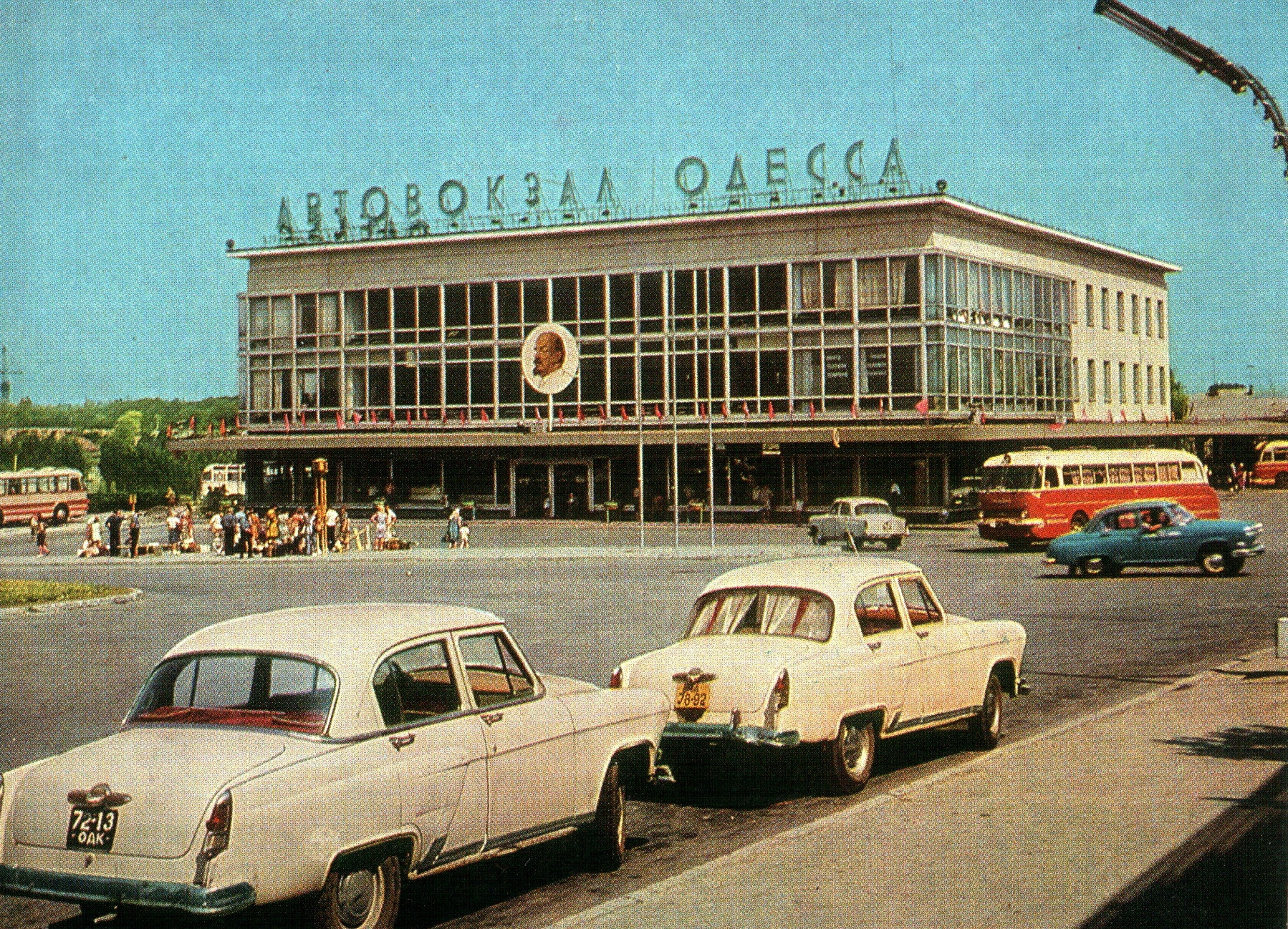 слева: волги на улицах советской Одессы — ГАЗ 21, 2,4 л, 1965 г. / справа: автомобильная парковка перед аэропортом «Одесса». Фото 1980-е г.