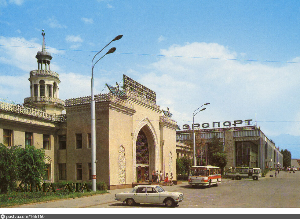 Аэровокзал Алма-Аты. Казахская ССР. 1972 Г. Архитекторы: А. Котов, И. Щевелева, А. Леппик Пропускная способность: приблизительно 200 пасс/ч.