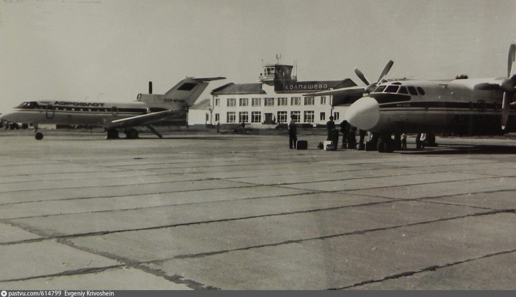 снизу: Як-40 на фоне аэровокзала. Фото 1980-е г. / Самолет Ан-24 в аэропорту «Днепропетровск».