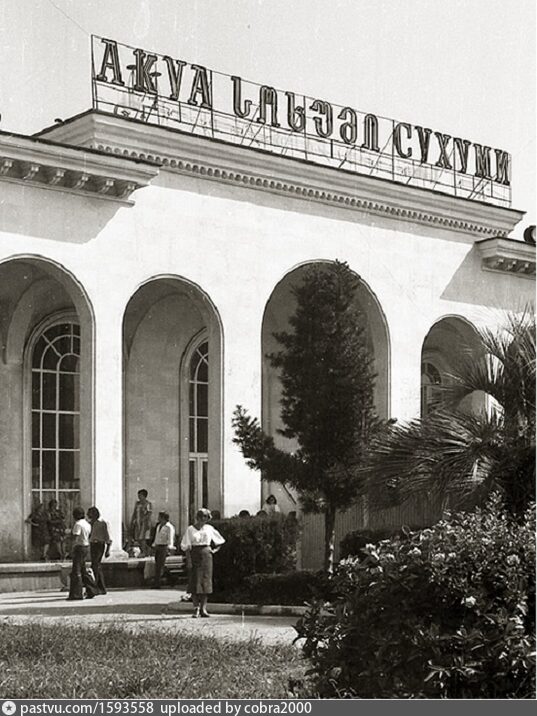 слева направо: фрагмент фасада Сухумского аэропорта. Фото 1970–1972 гг. / фото 1970–1972 гг. / фото 1979 г.