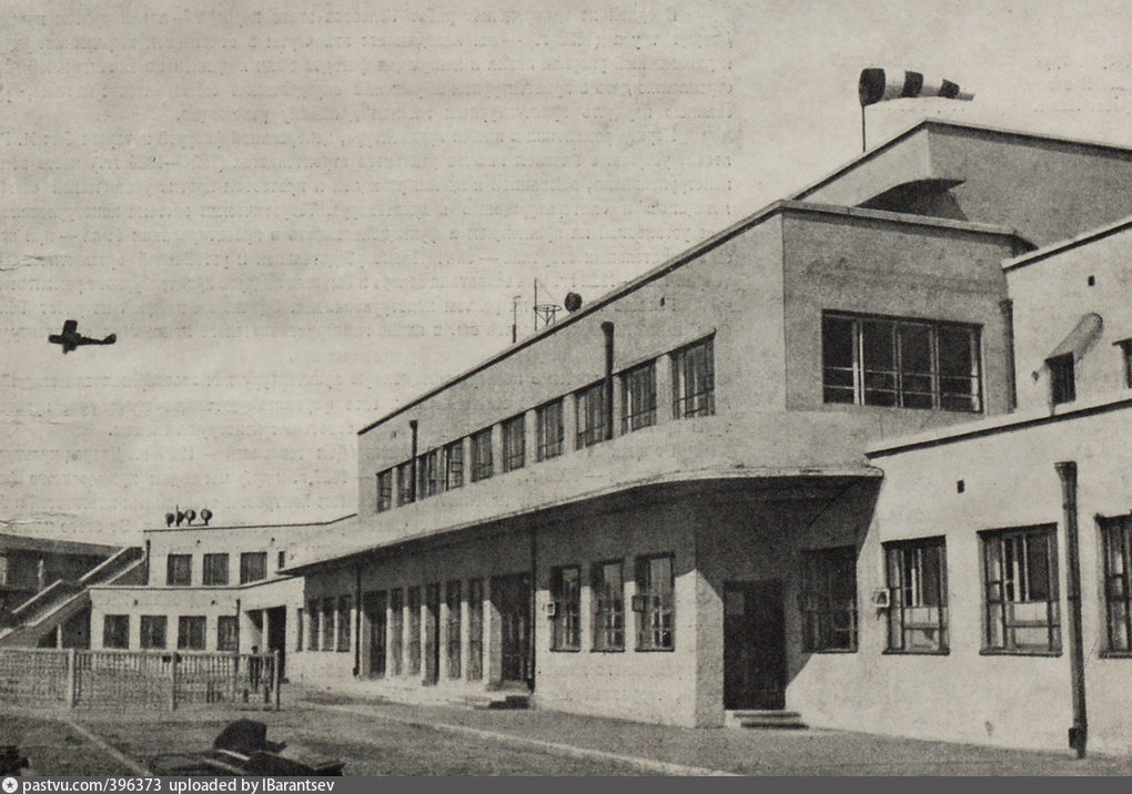 Аэровокзал аэропорта «Минск-1». Минск, Белорусская ССР. 1933 г. Архитектор: И. Лангбард Пропускная способность: 50 пасс/ч.