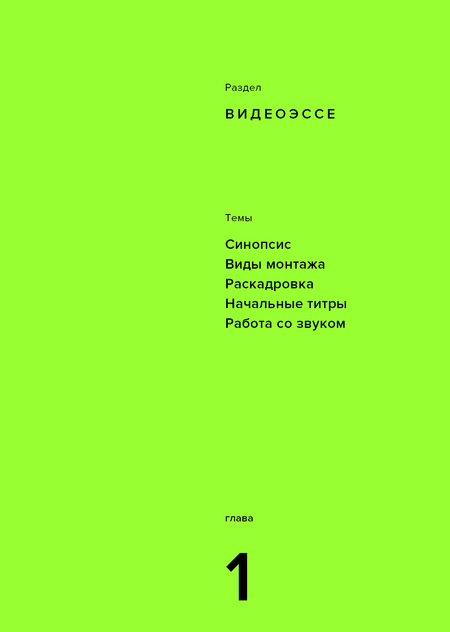 1. Кадр с названием может быть анимированным или статичным. Переход от него к первой сцене видеоэссе также может быть анимирован, решен простой монтажной склейкой или представлять с этой сценой единое целое