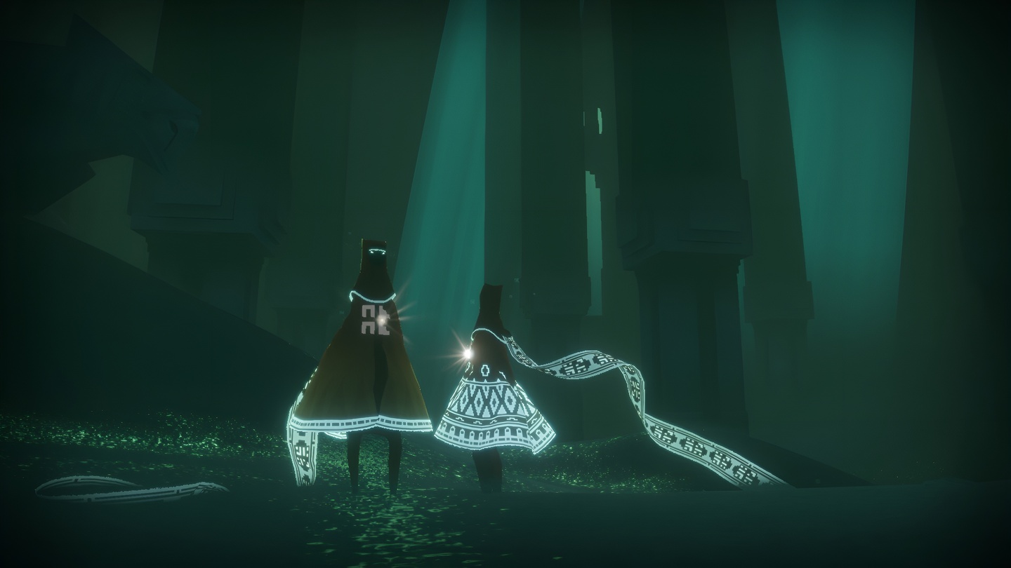 - Dark Souls строит нарратив через развалины, вертикали, пустоты, кольцевые маршруты. - Hollow Knight рассказывает историю павшего королевства через архитектурную стратификацию: руины, подземелья, заброшенные храмы. - Journey говорит через топологию: путь паломничества, гора как цель, ветер как препятствие.