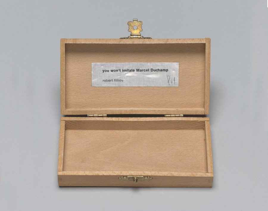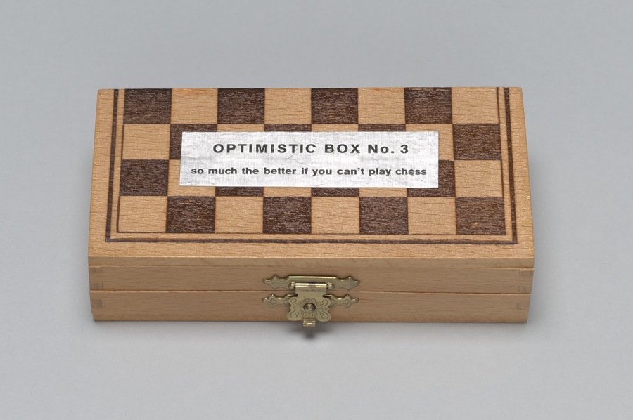 В серии «Опитимистические коробки» художник Роберт Филлиу иронически отмечает: «Хорошо, что ты не умеешь играть в шахматы», а внутри шахматной коробки есть продолжение надписи: «Ты не сможешь подражать Марселю Дюшану». В коробке нет никаких шахмат. Данная серия разрабатывалась как подарочный набор художников группы Флюксус.