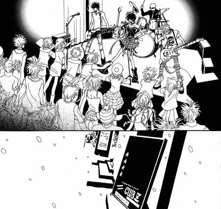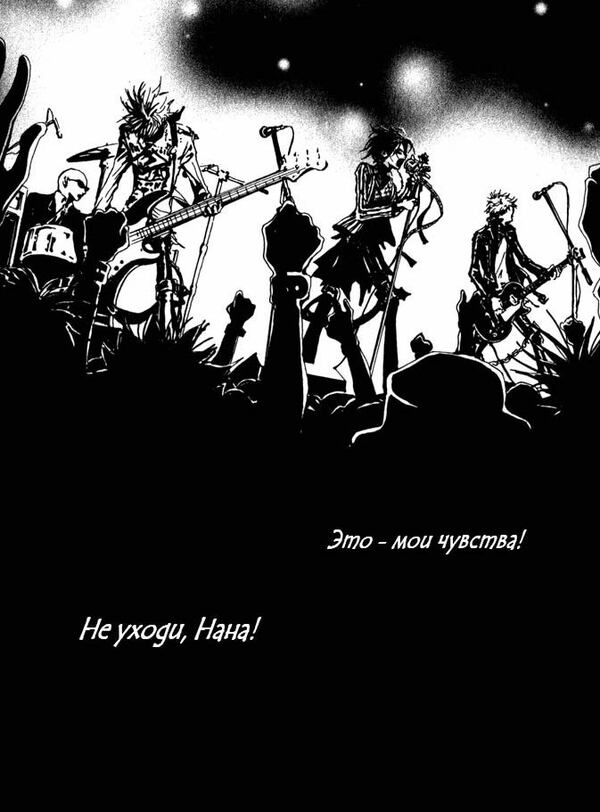 В манге NANA, кроме бытовых кадров, важную роль играют сцены концертов и визуальная эстетика музыкальной индустрии субкультуры. Ай Ядзава создала эффектные фреймы, которые напоминают концертные афиши и журнальные развороты. В этих эпизодах субкультурная мода подается в стилизованном, преувеличенно выразительном ключе. Позы, свет и ракурсы усиливают эмоциональную передачу. Именно эта часть манги позволяет рассматривать ее в рамках стилизованно-романтизирующего режима.