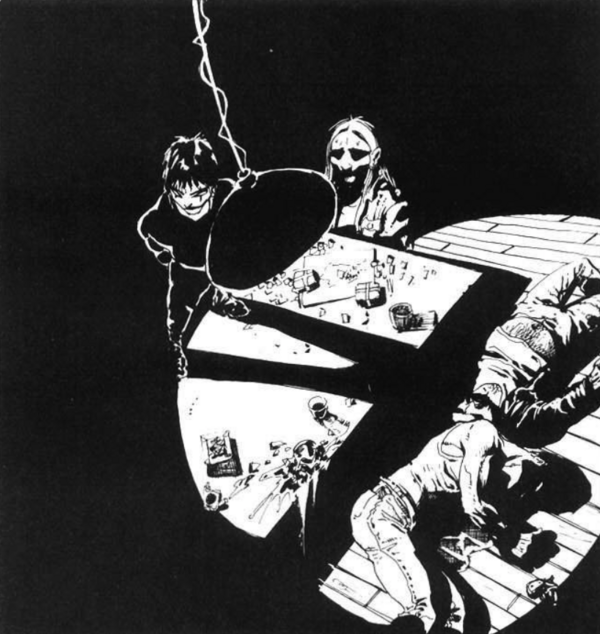 [Рис. 31] Джеймс О’Барр, фрагменты из комикса The Crow, том 1 глава 1 страницы 6 и 22 (1989–1990 года)