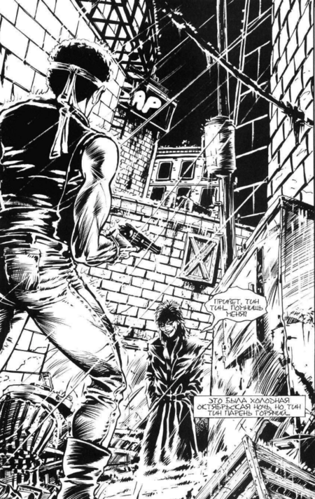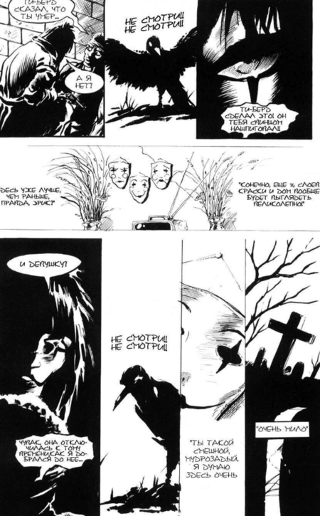 [Рис. 33] Джеймс О’Барр, фрагменты из комикса The Crow, том 1 глава 1 страницы 10 и 30 (1989–1990 года)
