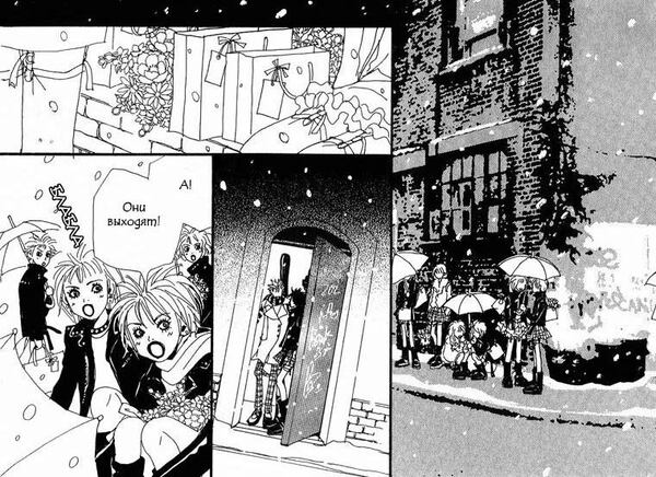 [Рис. 41] Ай Ядзава, фрагменты из комикса Paradise Kiss, том 4 глава 33 страницы 6 и 7 (2000–2003 года)