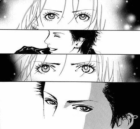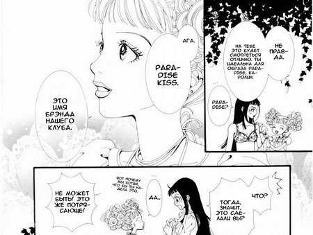 [Рис. 42] Ай Ядзава, фрагменты из комикса Paradise Kiss, том 4 глава 36 страницы 21 и 22 (2000–2003 года)