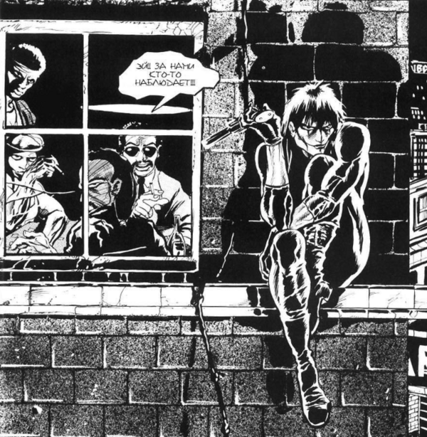 [Рис. 32] Джеймс О’Барр, фрагменты из комикса The Crow, том 1 глава 1 страницы 9 и 17 (1989–1990 года)