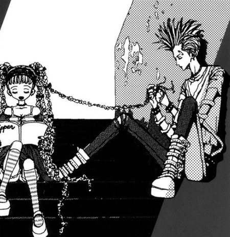 3. Ностальгический триггер: у читателя вызывает ностальгию прежде всего молодежная мода, отраженная в образах героев. Это чокеры, цепи, металлические элементы и проколы, да и в целом образы в одежде.
