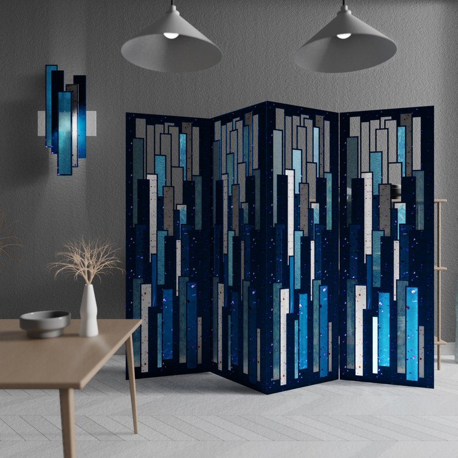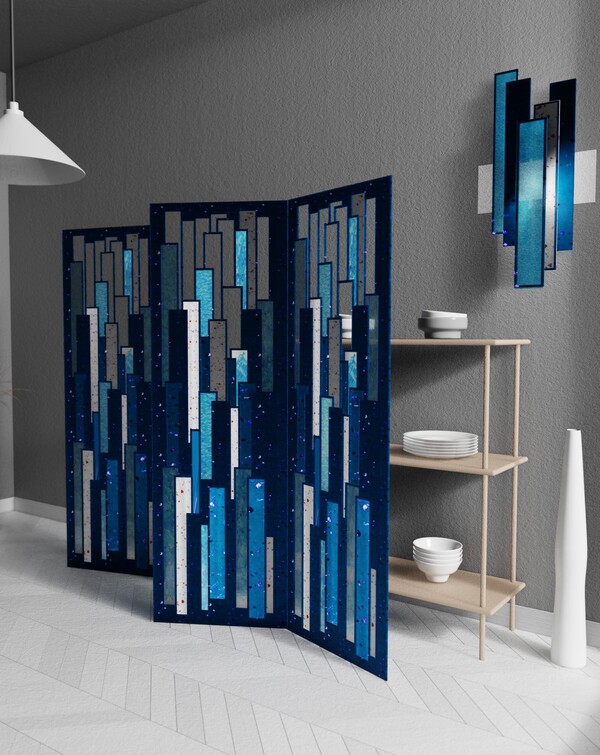 In larger objects (if necessary, a reinforced frame made of metal or wood is possible). In the presented screen and lamp, our plastic is mainly used.