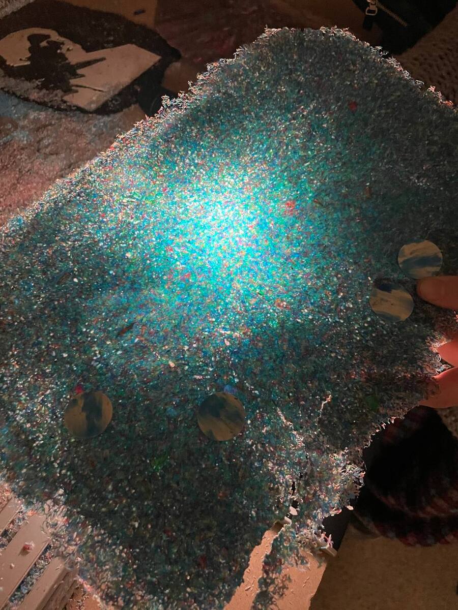 A year ago, together with the V. I. Surikov Museum-Estate, we launched an equipped offline site for non-industrial production of sheet plastic from recycled materials — HDPE and polypropylene crumbs.
