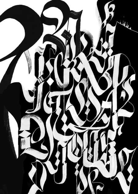 As part of the «Calligraphy Opportunities» course at the ICU School of Design, I had to create a calligraphy book using the word «liric». I couldn’t come up with a story with him for a long time until I realized that lyrics were all around us. During this period, I listened to the song «A National Acrobat» by Black Sabbath. Her main idea is that when we die, we always reborn and get another chance. Based on that thought, I came up with a story about a musician who didn’t finish the song before he died and left a new sign for himself to finish. In order to collect the composition in parts, after reincarnation, it passes through a variety of mazes of memory and in each one finds one encrypted letter, and at the end collects the word «liric» and completes the composition.