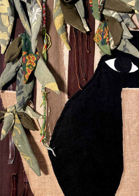 Ковер представляет собой текстильный коллаж из остатков материалов от предыдущих работ и старых вещей, таких как наволочки, штаны, футболки и расточки. Основу работы представляют обрывки с грубыми, необработанными краями, которые создают эффект естественной фактуры леса. Размер ковра 95×91 см