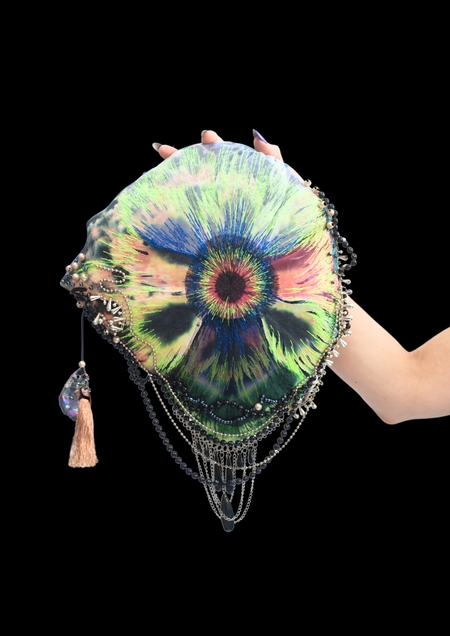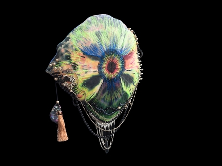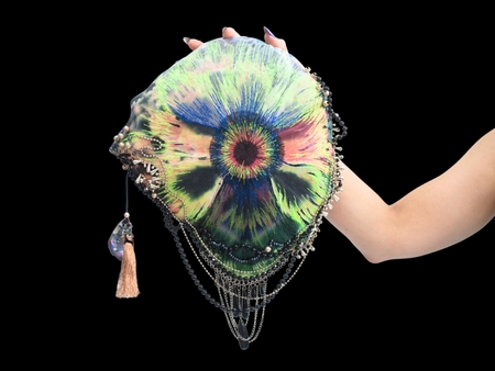 The series is being supplemented with new objects. The creation uses recycled and hand-dyed textiles, vintage beads, and threads from Soviet-era stocks. The author applies materials that have history, reinforcing the motif of reincarnation, which is one of the main themes in her art.