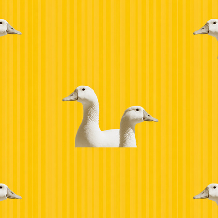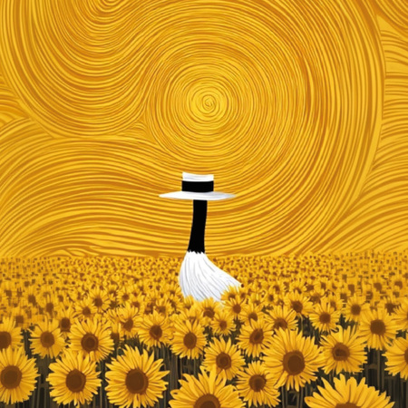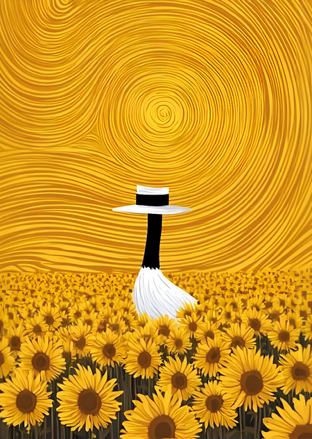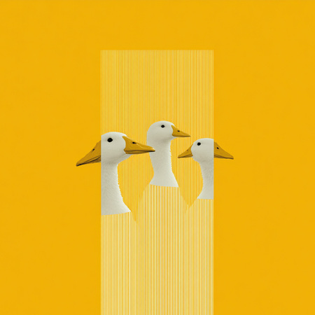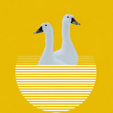 Промт: соедини эти изображения, добавь абстракции, желтого цвета и гусей