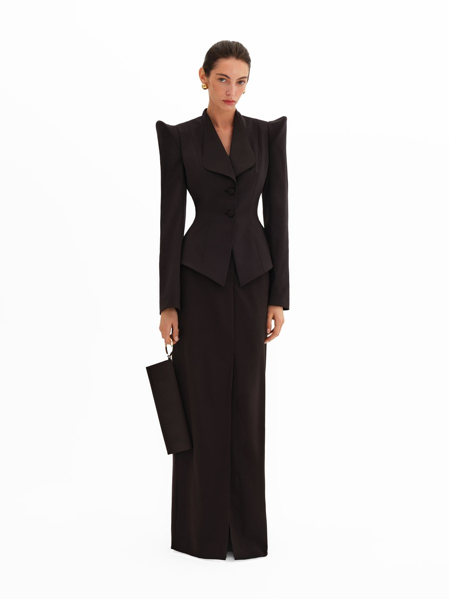 Жакет AURA с акцентной талией Скульптурный силуэт формируется за счёт применения особых конструктивных и технологических решений.