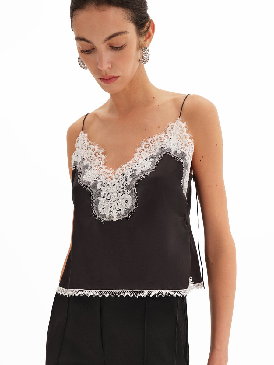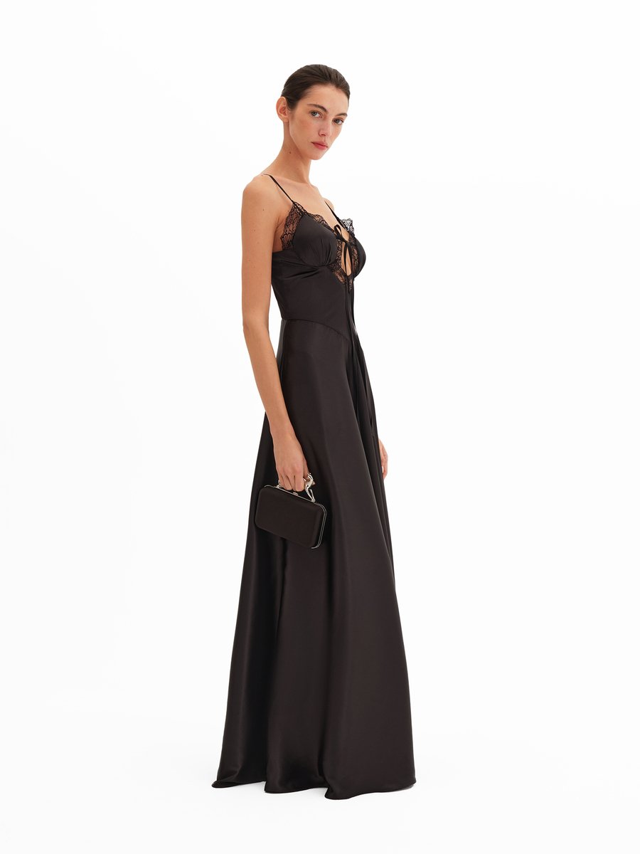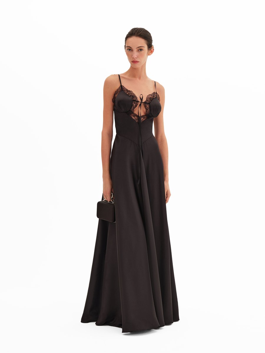 Платье с кружевными вставками CARMEN Модель украшена изысканным французским цветочным кружевом с фестонами, расположенным вдоль фигурного декольте с акцентированными чашечками.