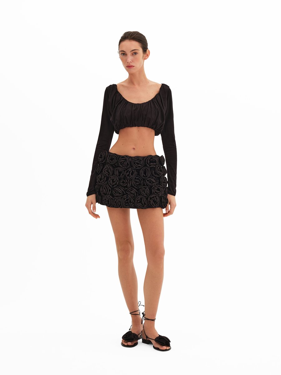 Юбка-шорты Madame Colette Модель объединяет женственный силуэт и удобство шорт. Плотный хлопок держит форму, а 45 вручную скрученных роз делают вещь по-настоящему особенной.