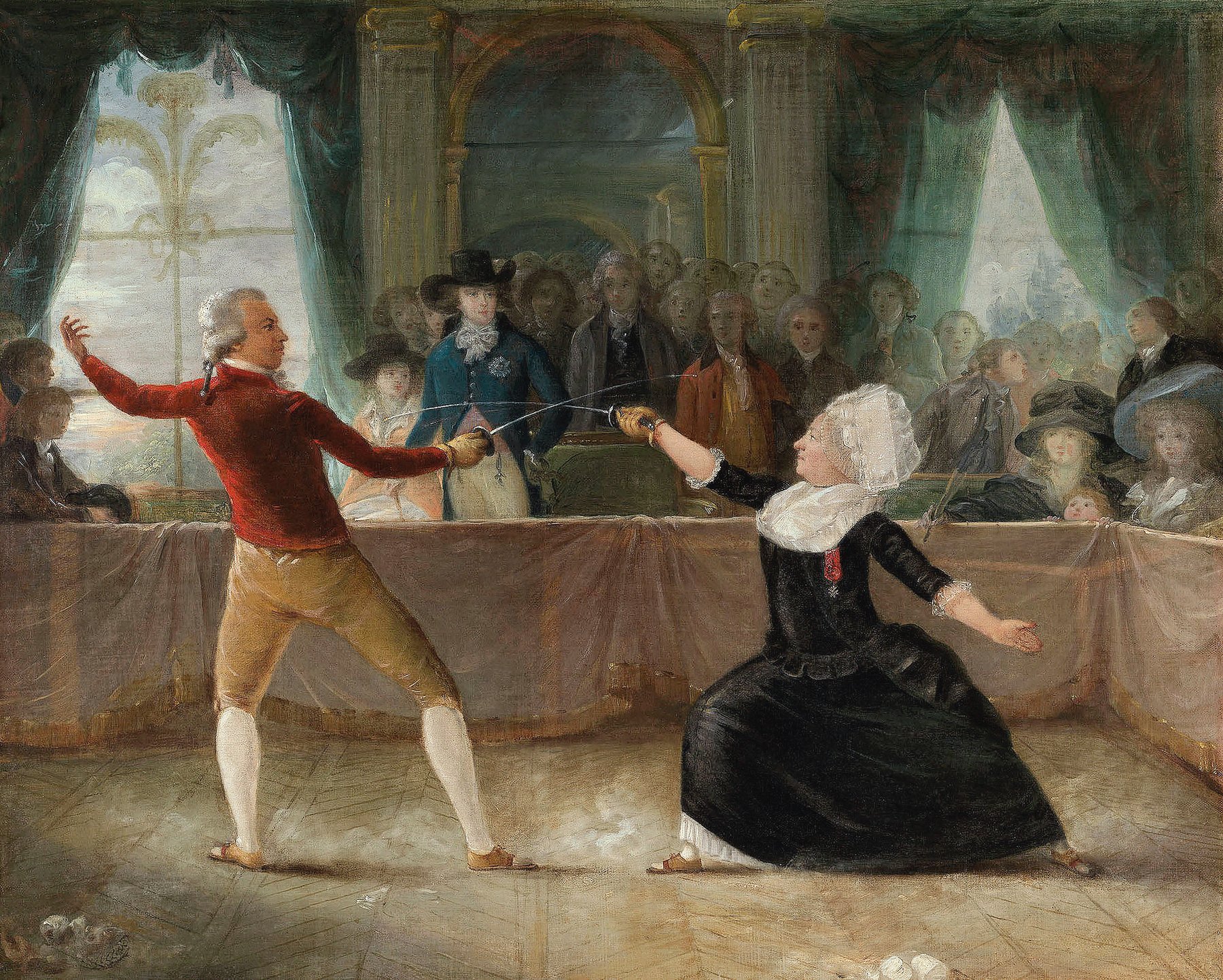 Александр-Огюст Робино. Фехтовальный поединок между шевалье де Сен-Жоржем и шевалье д’Эоном 7 апреля 1787 года. 1787–1789. Виндзорский замок, Британская королевская коллекция