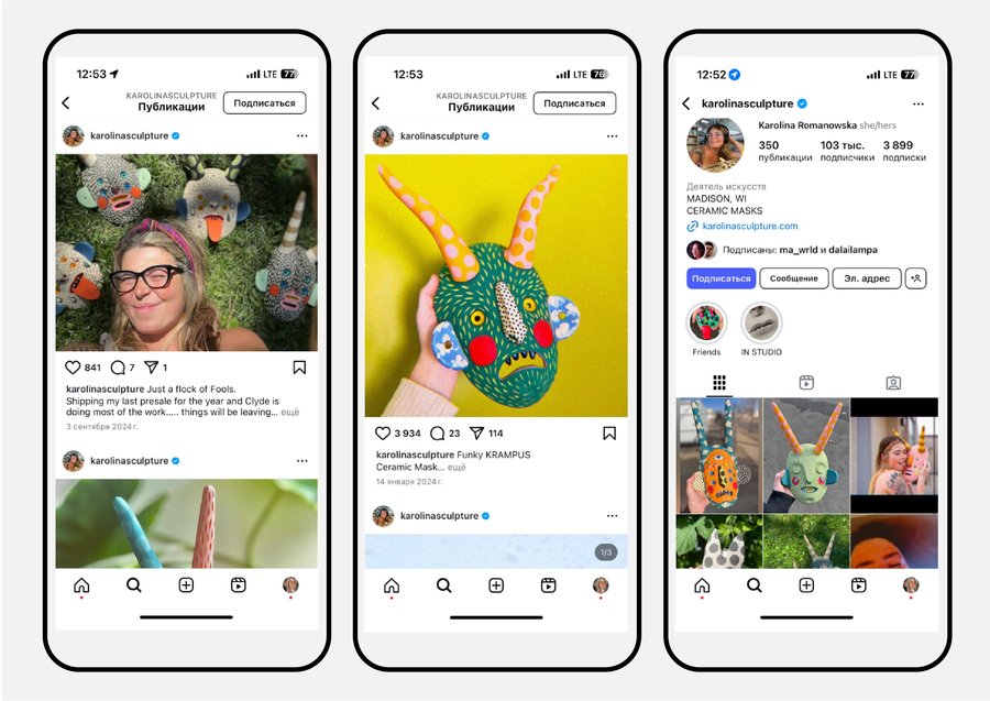 Instagram, TikTok, Pinterest — идеальные платформы для визуального контента. — показывайте процесс создания зина, закулисные фото и видео — делитесь фрагментами зина, чтобы заинтересовать аудиторию — используйте трендовые звуки — проводите конкурсы, розыгрыши и коллаборации с другими художникам / брендами.