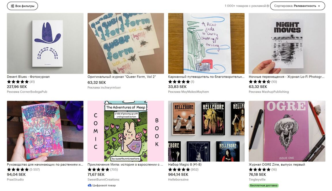 Прямая продажа зинов — один из самых популярных и понятных способов монетизации, который позволяет не только окупить затраты, но и оценить интерес аудитории к проекту. Размещение зинов в магазинах, на выставках или онлайн- платформах расширяет доступ к продукту.