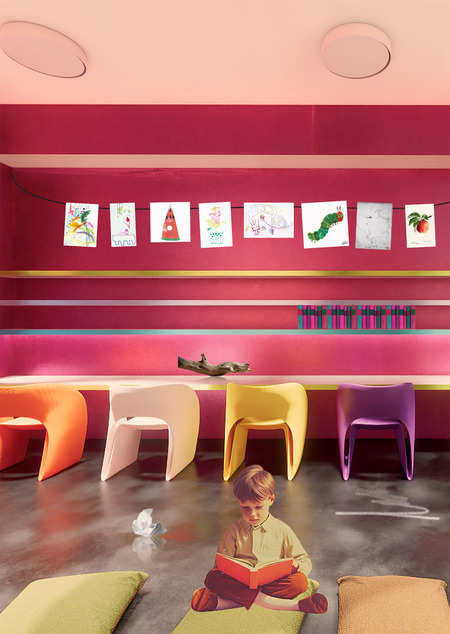 Пространство для развития творческих способностей у детей младшего и среднего возраста. Класс располагает к свободному самовыражению и работе с различными художественными материалами. Вдохновением послужили работы мексиканского архитектора Луиса Баррагана.