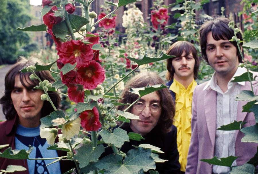 «На ранних снимках „Битлз“ в черной коже, а потом выступают в строгих черных костюмах и белых рубашках. Они переживают период архаики. Постепенно в их облачении появляются цветные рубашки, а к выходу „Сержанта“ — насмешливо-дурацкие цветные мундиры и многоцветие. Наконец, ко времени распада и особенно после него они больше не используют активные цвета» (Николай Александров).