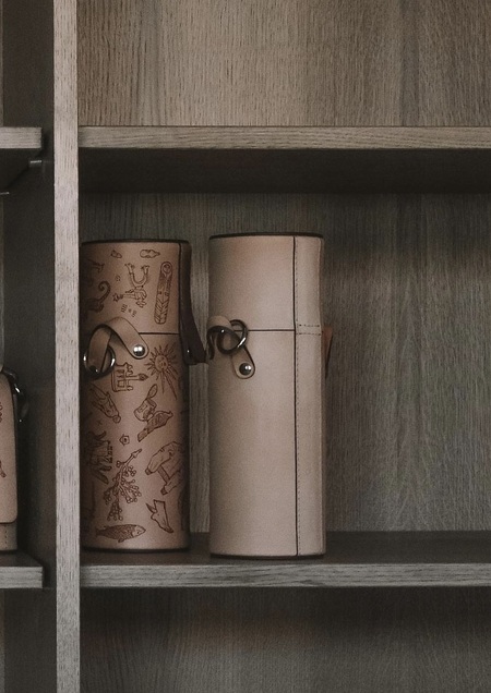 Сумка выполнена из натуральной кожи растительного дубления и вручную покрыта татуировками в технике «выжигание» по индивидуальному дизайну. Во время личного разговора художник Timur Voynakoshka делает зарисовки о вас и вашей жизни, после чего переносит их на сумку.