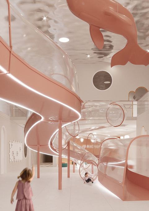 What is the ‘world through the eyes of a child’? These are classics instead of paving slabs, a hut made of the chairs and a blanket, oceans instead of a pool, the floor as the volcano lava. The main goal of this project was to reflect the vision of a child in reality, that will allow the guests crossing the threshold to get into an incredible underwater world, where whales soar above their heads, and water slides sweep past them to the appointed point.