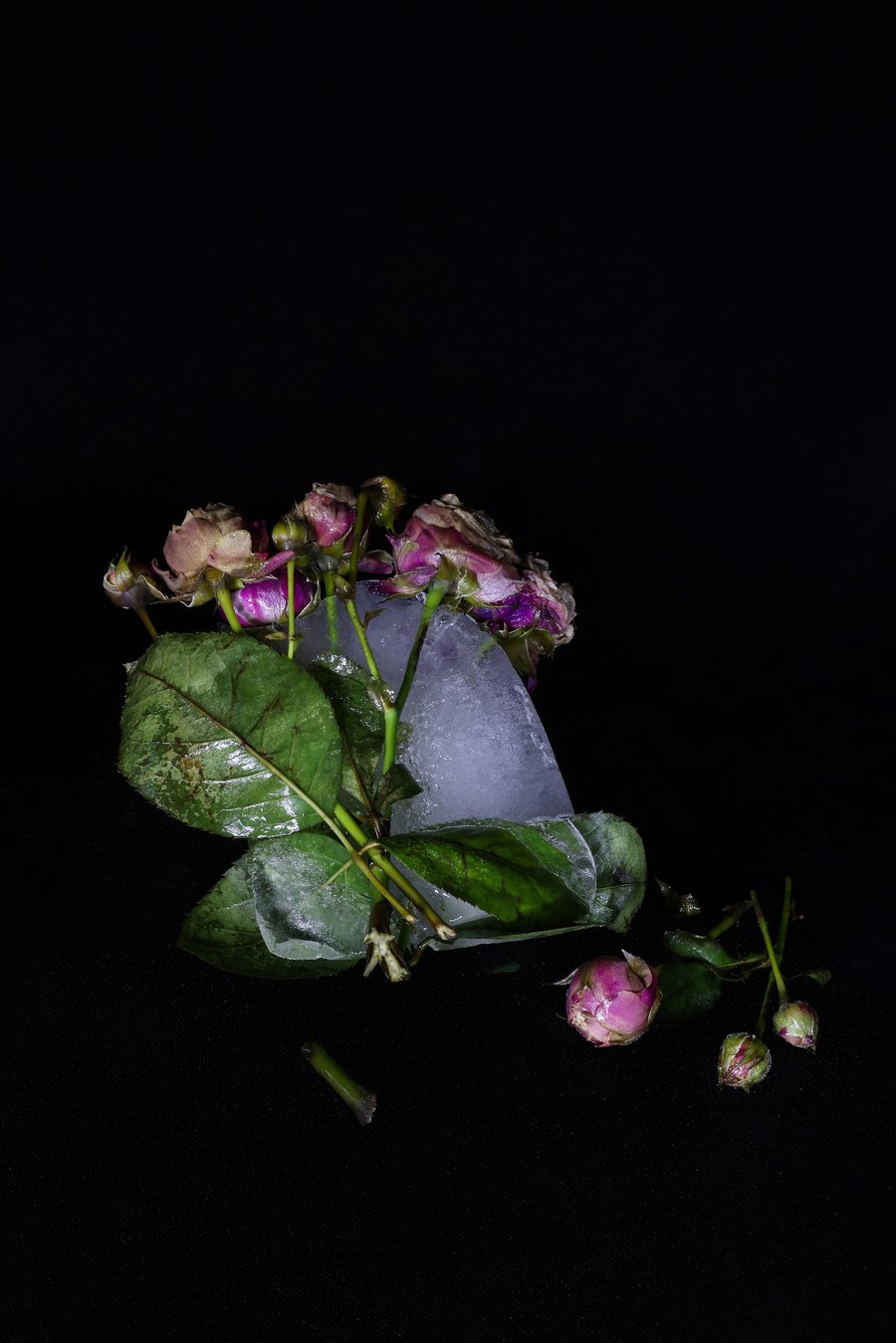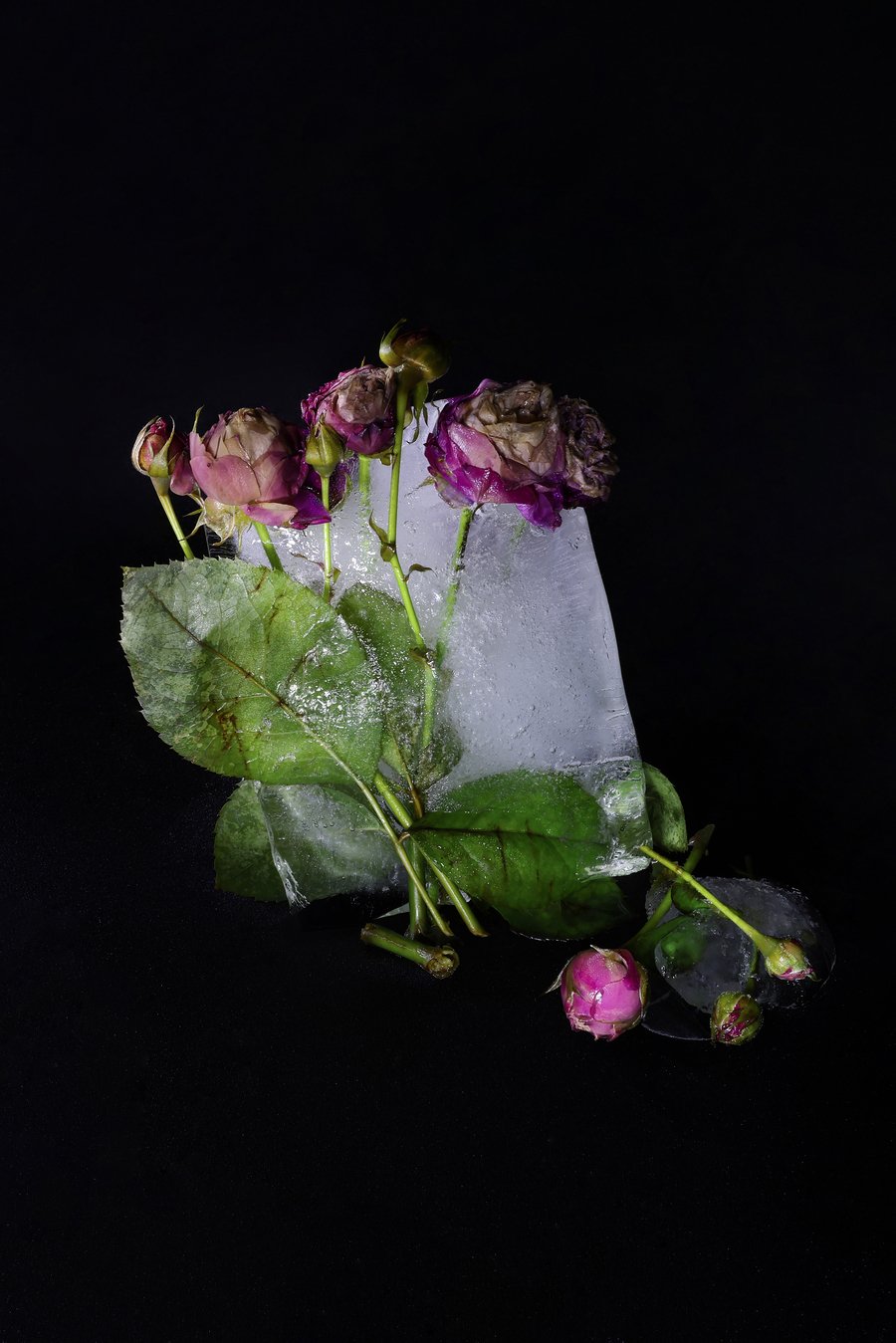 Проект с замороженными цветами — визуальная метафора. Он посвящен теме бренности, жизни как преходящему состоянию. В трех сериях, каждая из фотографий которых представляет собой стадию таяния льда как символа вечности, демонстрируется неизбежность изменений, трансформации материального.
