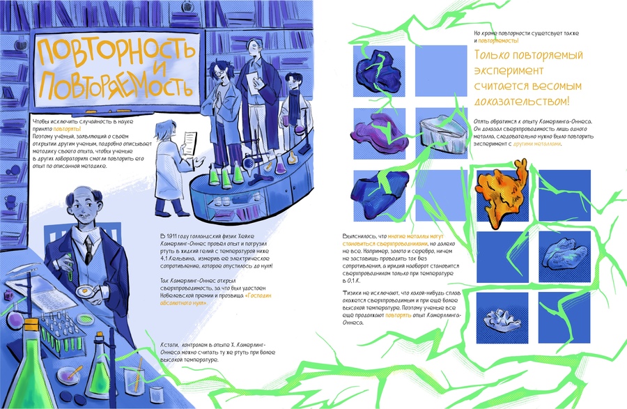 «Опытно-экспериментально» — это нон-фикшен комикс, показывающий на простых примерах и ярких иллюстрациях, как работают такие сложные понятия как наука и научный метод, где для ученых важную роль играют опыты и эксперименты.