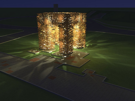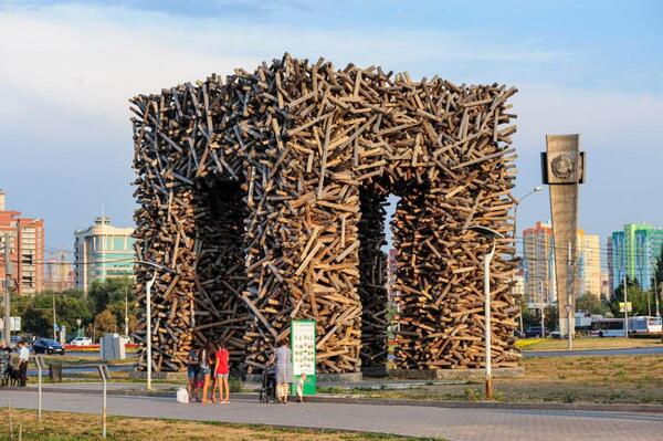 «Пермские ворота» — арт-объект Николая Полисского, созданный в 2011 году в рамках паблик-арт-программы Пермского музея современного искусства PERMM. Форма фасадов объекта выполнена в виде буквы «П». В объёме композиция напоминает триумфальную арку, ориентированную на четыре стороны света. Арт-объект был снесен недавно, в 2024 году, именно это и сподвигло взять его в качестве референса для своей работы, кроме того, была воплощена изначальная нереализованная задумка автора — внутренняя подстветка
