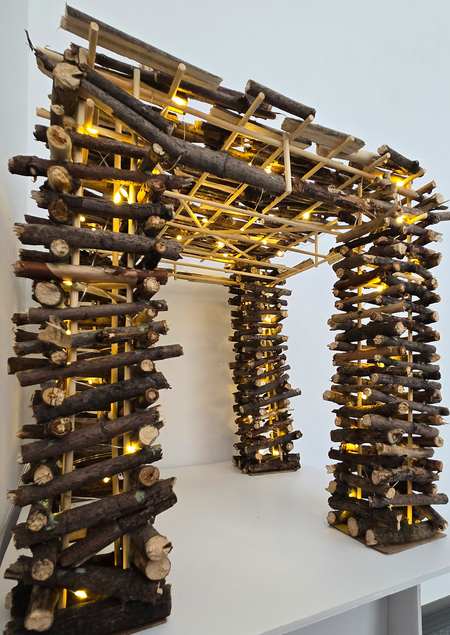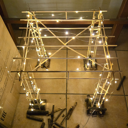 Проект заключался в создании светильника для интерьера Школы Дизайна. При создании были использованы натуральные ветки и светодиодная гирлянда, которые вместе создают интересный эффект «просвечивания».