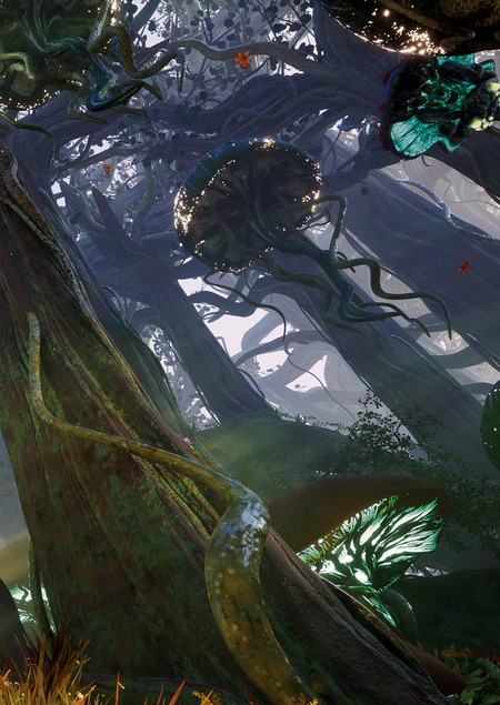 Sleepy forest — mysterious alien space, faking its secret and reminiscent of a fantastic dream.
