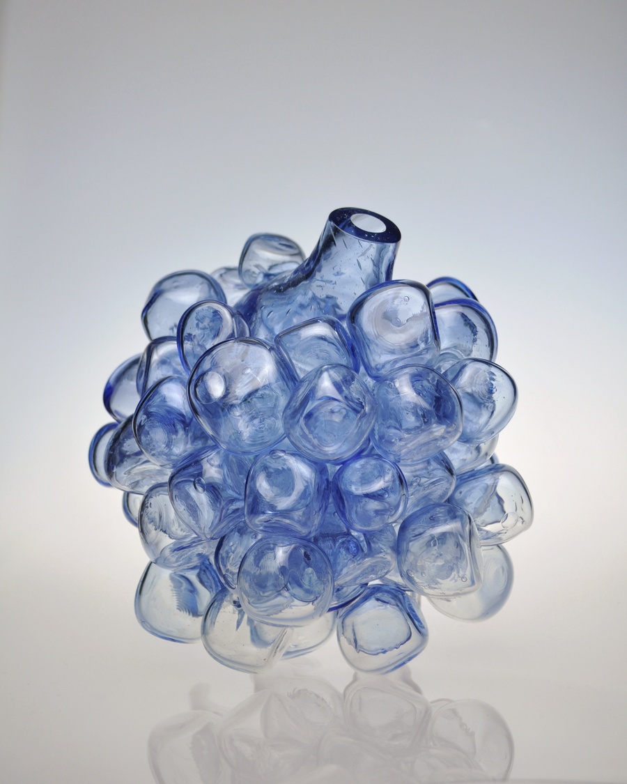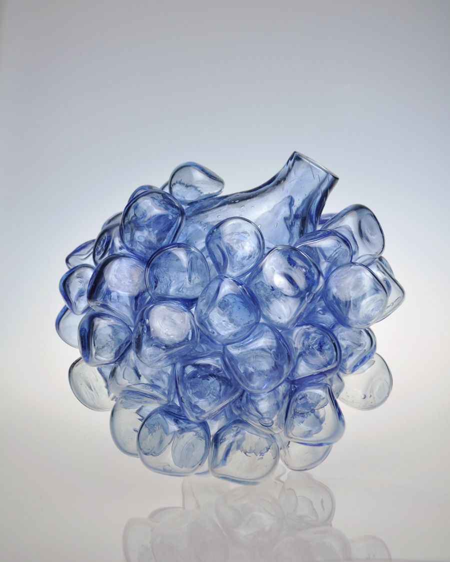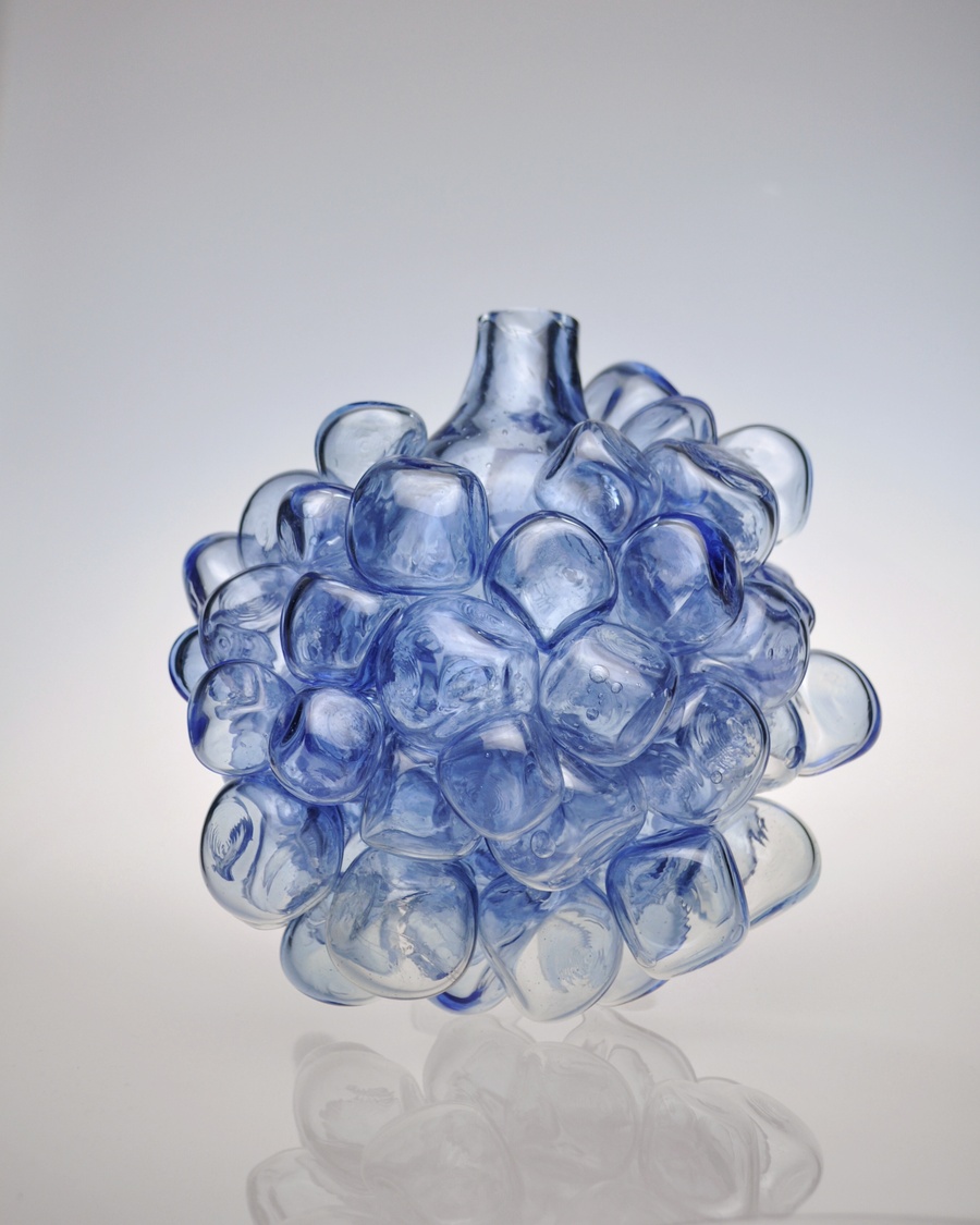 The name «New Source» includes two ideas: - a new source of material: this year I faced a shortage of the glass I usually buy, and bottle glass perfectly replaced the missing color scheme; - a new source of ideas: the color of the bottle glass reminded me of bubbling water, hence the image of bubbles and the desire to create a voluminous, airy vase that could become an interesting interior item.
