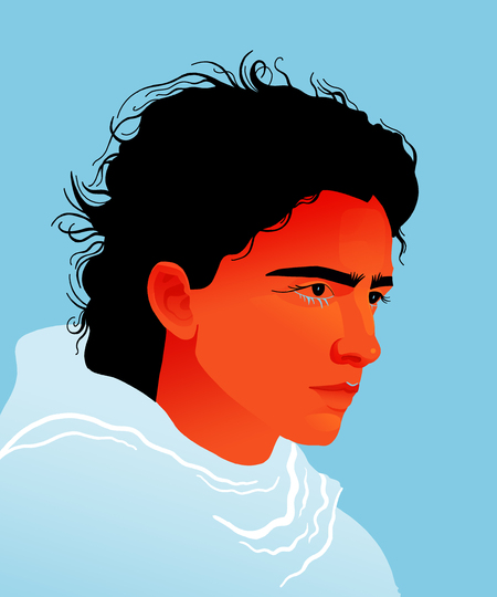 Представленная серия портретов-постеров посвящена актерам из кинофильма «Дюна». Работа выполнена с использованием комбинации тонких линий и градиентных заливок оранжевого и голубого цвета.
