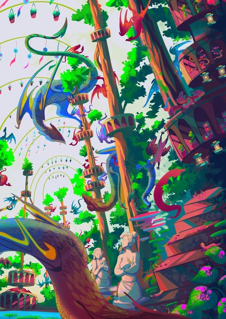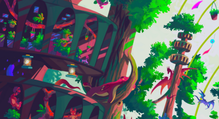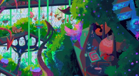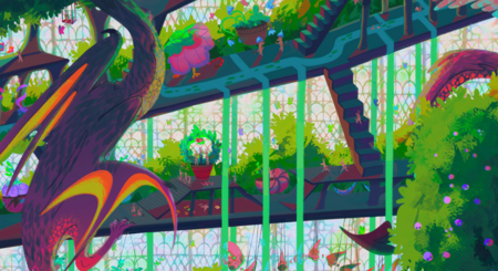 «Зелёный дом» — огромная оранжерея, где обитают не только растения, но и фантастические существа всевозможных форм и размеров.