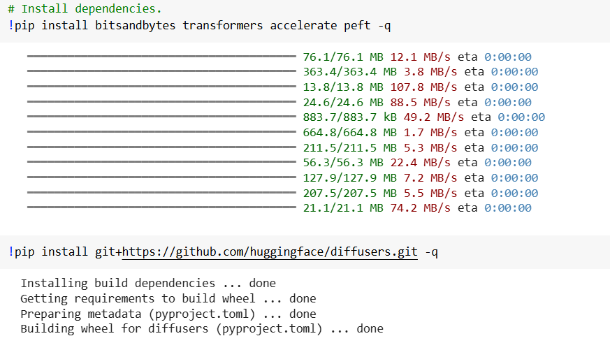— Проверка доступности GPU через nvidia-smi — Установка библиотеки: bitsandbytes, transformers, diffusers, peft (параметрическая настройка, включая LoRA), скрипт для обучения Dreambooth-LoRA.