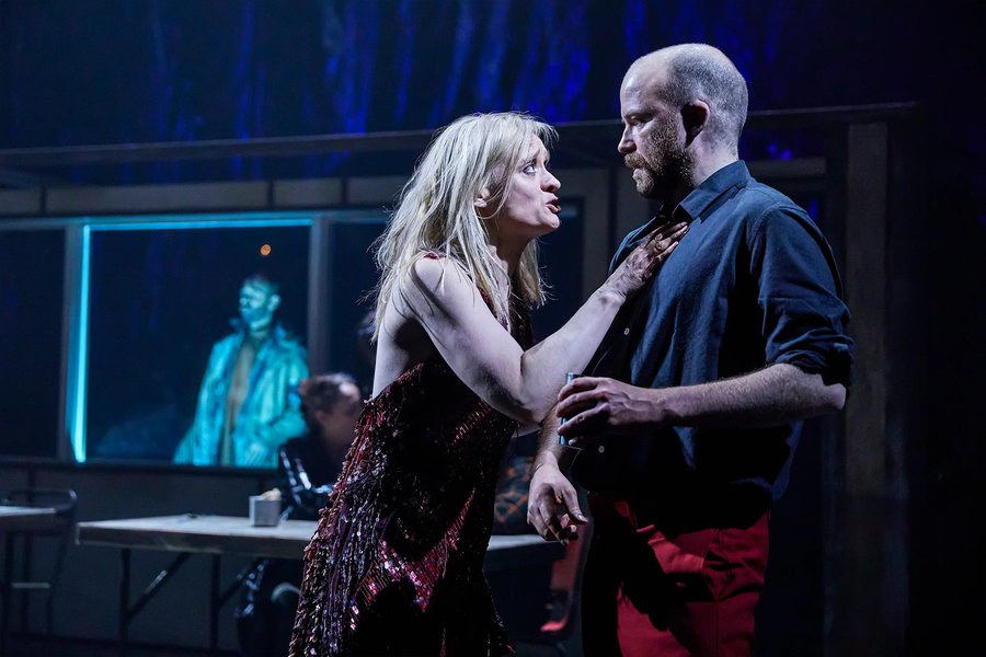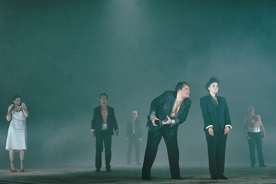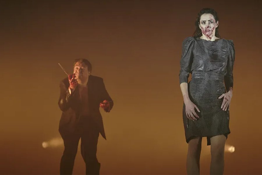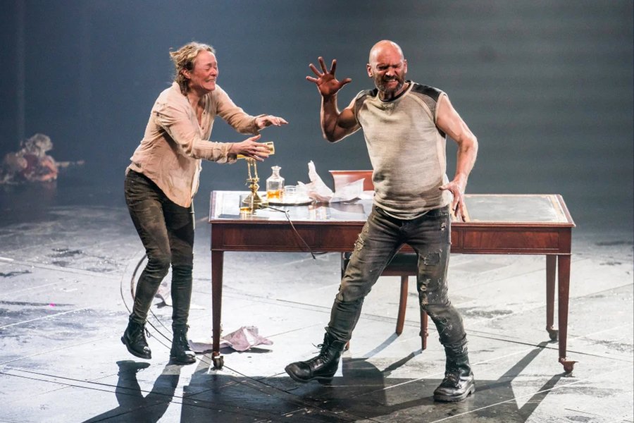 Бутусов создаёт на сцене психофизическую воронку. Пространство спектакля — это не замок, не ландшафт, а поле внутренней турбулентности, где персонажи разрываются между желанием, страхом и самоуничтожением. Визуальный язык — контрастный, хаотичный: чёрное и красное, тени, экспрессивные проекции, постоянное движение. Макбет и Леди Макбет здесь как два вихря, сталкивающихся и уничтожающих друг друга.