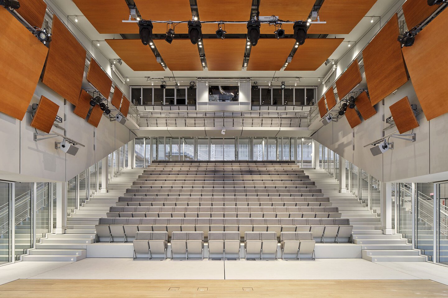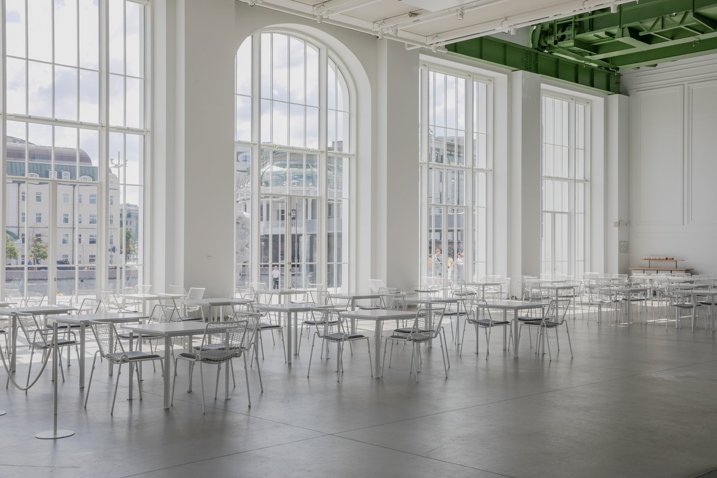 Exhibition pole (выставочный полюс): набор залов разной площади и высоты (от подземной «чёрной коробки» до двойного света в нефе) для показа любых форм искусства; суммарно около 5 500 м² выставочных площадей.​
