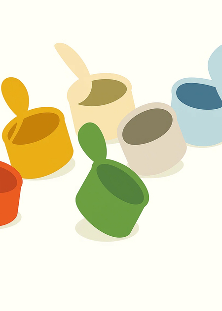 Промт для Sora: Minimalist flat illustration on a solid black background. In the center — a group of open tin cans, drawn in a clean geometric vector style. Each can is a flat silhouette with a single matte color fill, no gradients, no textures, and no shadows. The cans are arranged in a loose, slightly overlapping composition — same shapes and colors as the reference: light beige, light blue, gray, olive green, mustard yellow, and orange-red. Each can has a simple circular opening and a flat, open lid in the same color. No text, no logo, no additional elements — only the cans on black. Style: modern Bauhaus-inspired flat design, clean, bold color contrast, minimalism, no 3D depth. Ratio: 16:9, high resolution, centered composition.