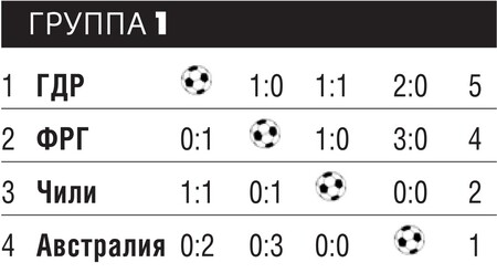 Впрочем, поражение имело и благоприятную сторону: команда хозяев избежала «свидания» с голландцами во втором групповом турнире. Сборная ГДР за счет хорошей физической подготовки обыграла крепких австралийцев, однако следующий матч с командой Чили провела скованно. По мнению тренера команды Бушнера, игроки не справились с волнением, поскольку на кону стоял выход в следующий этап розыгрыша. Ничейный результат перенес решение этого вопроса на последний тур, в котором сборная ГДР обыграла хозяев и заняла первое место в группе.