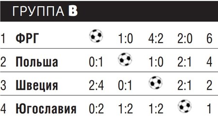 Никто не верил всерьез, что за выход в финал будут бороться шведы или югославы. Эти сборные стали поставщиками очков для фаворитов — команд Польши и ФРГ. Поляки в матчах со шведами и югославами выглядели подуставшими, хотя их атакующее трио Лято — Шармах — Гадоха продолжало эффектно взламывать оборонительные построения противника. Однако главным героем двух трудных побед стал вратарь Томашевский, отразивший немало сложных ударов, в том числе пробитый шведом Таппером пенальти.